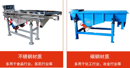 直線篩選機(jī)常用材料可分為Q235碳鋼和304不銹鋼。相應(yīng)的不銹鋼價(jià)格會(huì)高于碳鋼,但這些都只是表象,真正影響直線篩選機(jī)價(jià)格是材料的厚度和元素含量。同一塊板材,如果厚度不同,所含元素不同,價(jià)格也會(huì)不同。正規(guī)振動(dòng)篩廠家使用的板厚為:碳鋼厚度為5mm,不銹鋼為2mm,雖然有些板塊表面看起來(lái)一樣,但實(shí)際元素含量很低。