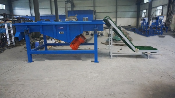 破碎機 + 振動篩:廢舊輪胎經破碎機撕裂、破碎成橡膠塊后,由輸送帶送入振動篩,通過粗篩網分離出未破碎完全的大塊橡膠與雜質,合格橡膠塊進入下一道工序。